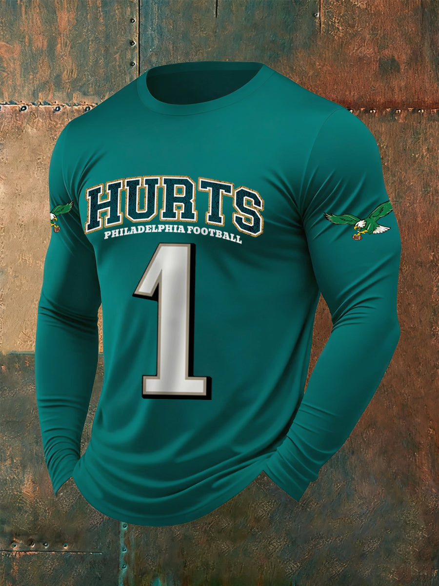 Men's Philadelphia Football Fans Lovers Gameday Casual V-Neck Long-Sleeve T-Shirt
