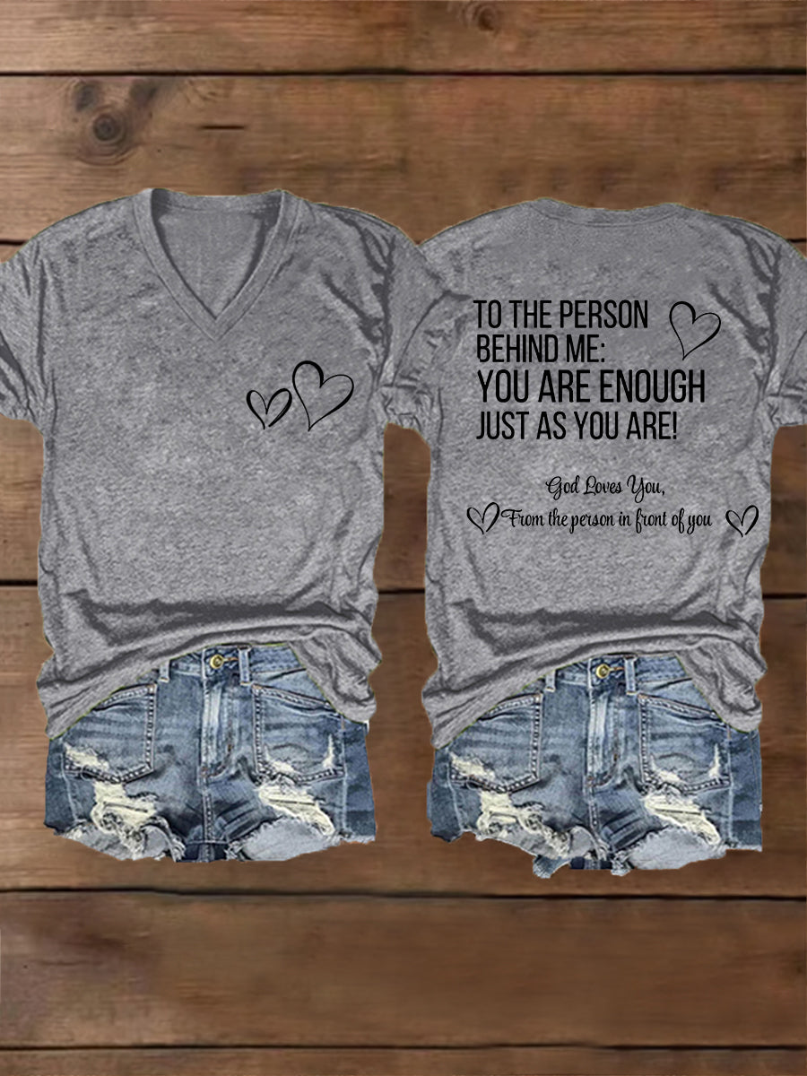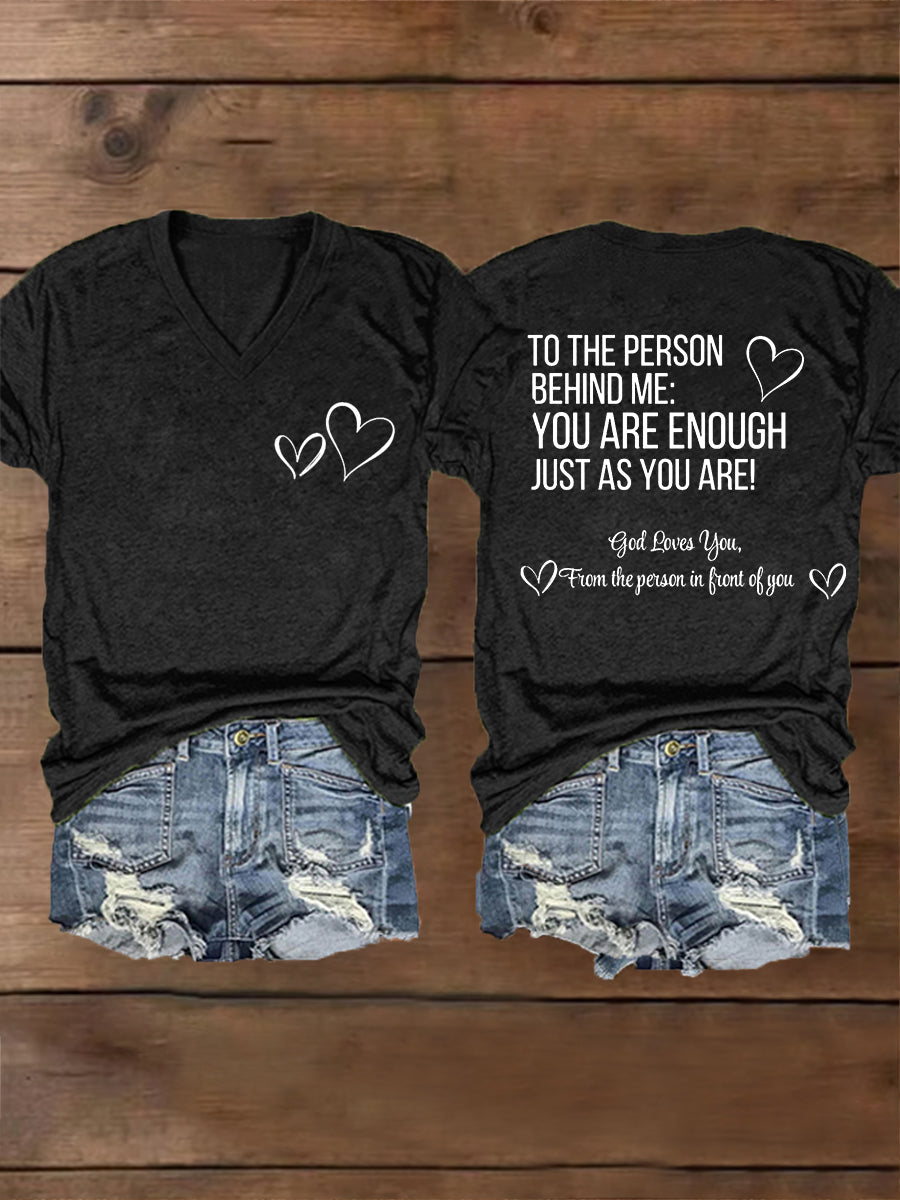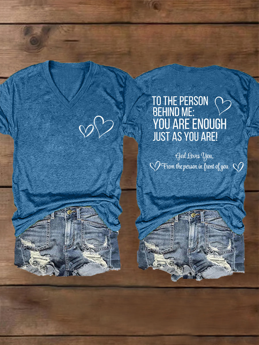 Women's Dear Person Behind Me You Are Enough Just As You Are! Mental Health Matters V-Neck Tee