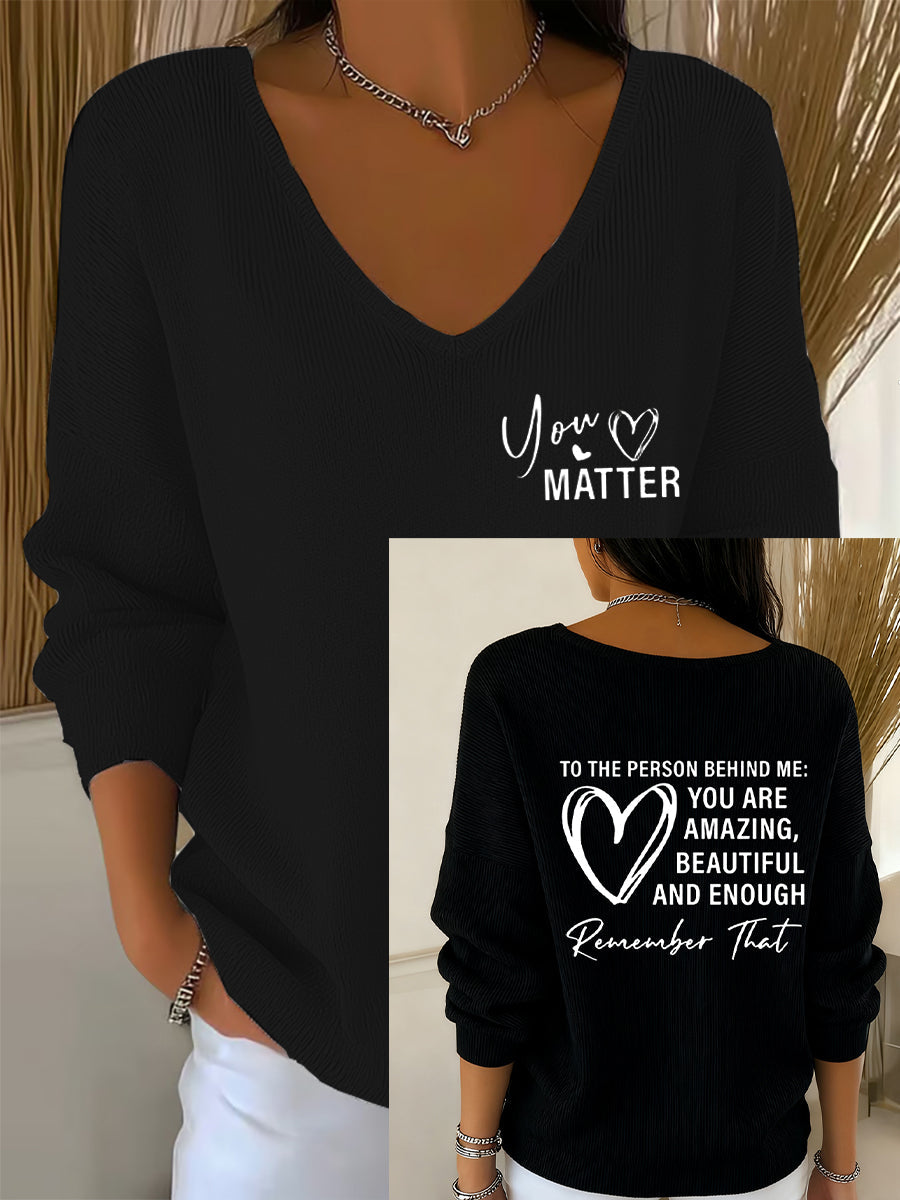 Women's Dear Person Behind Me You Matter Printed V-Neck Ribbed Top
