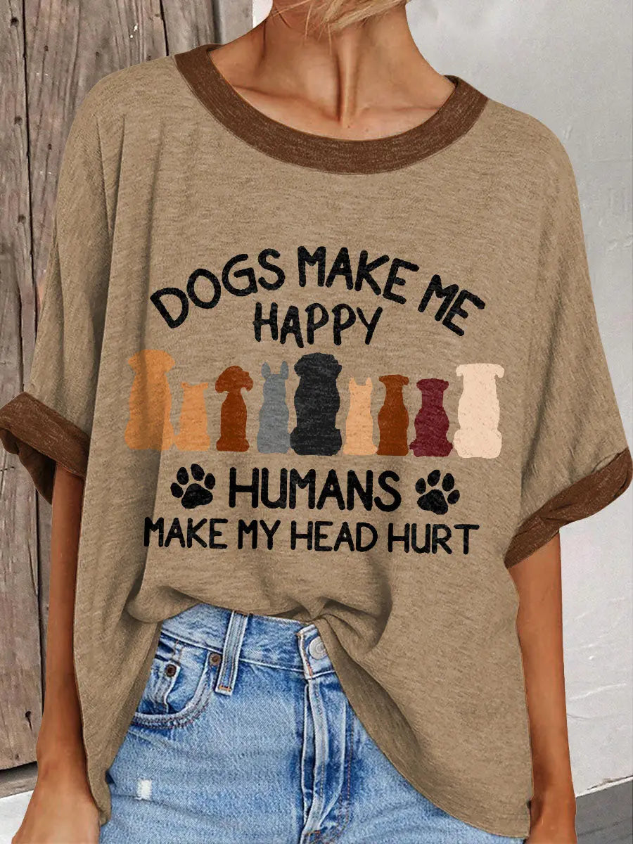 Women's dogs make me happy humans make my head hurt T-shirt