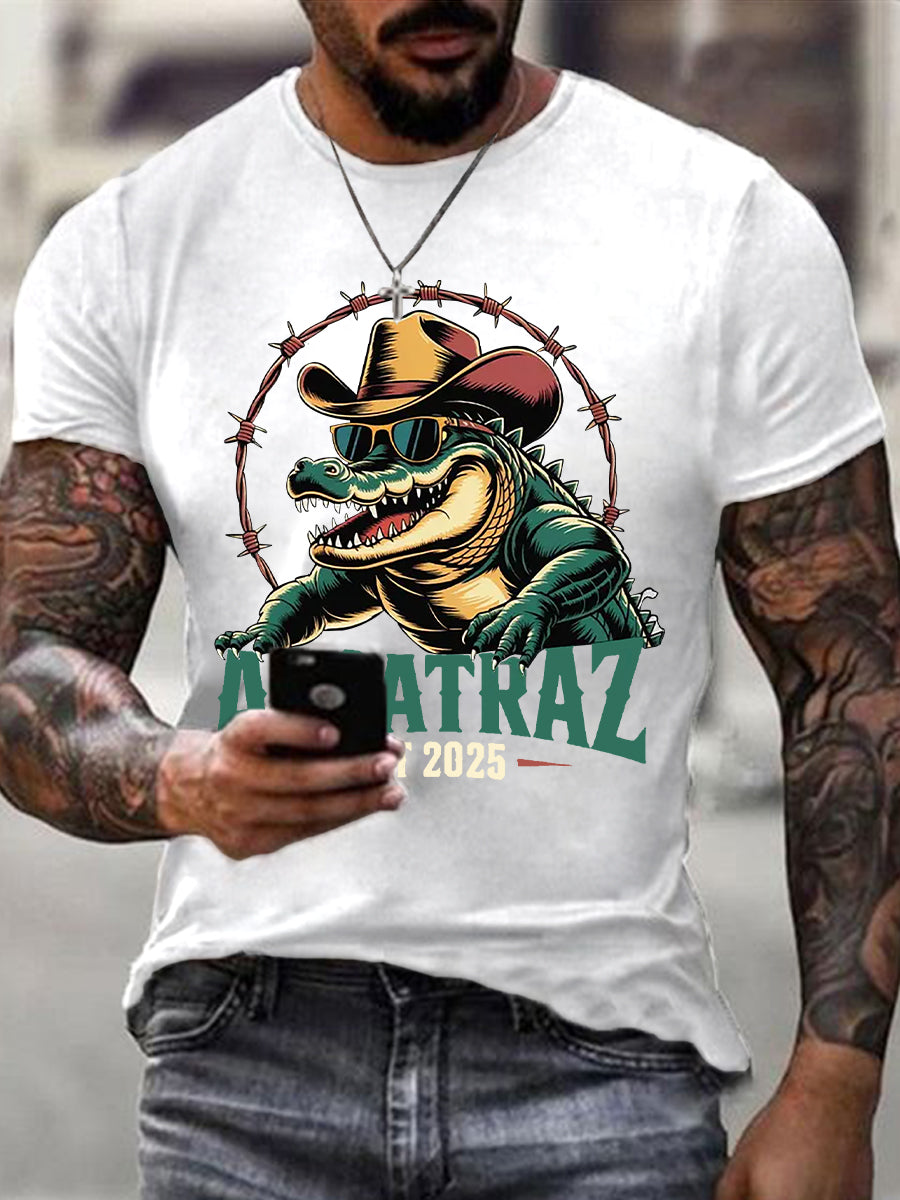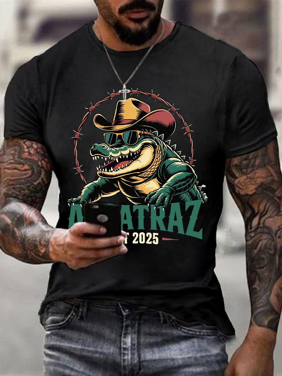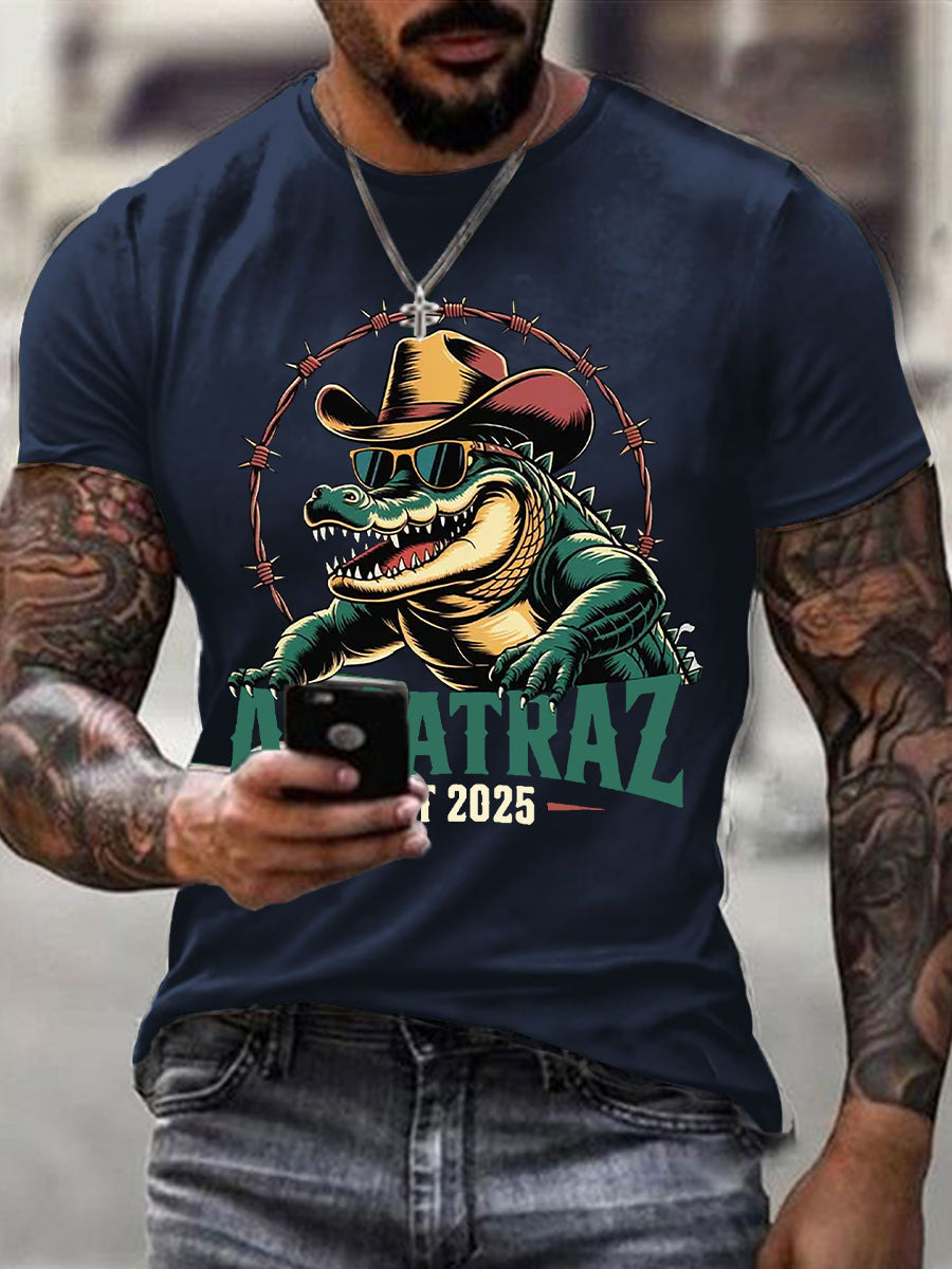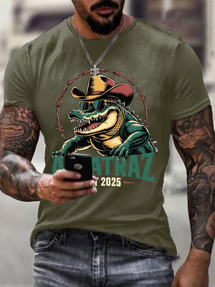 Men's Retro Alligator Alcatraz Funny Florida Everglades Dark Humor Short Sleeve Tee