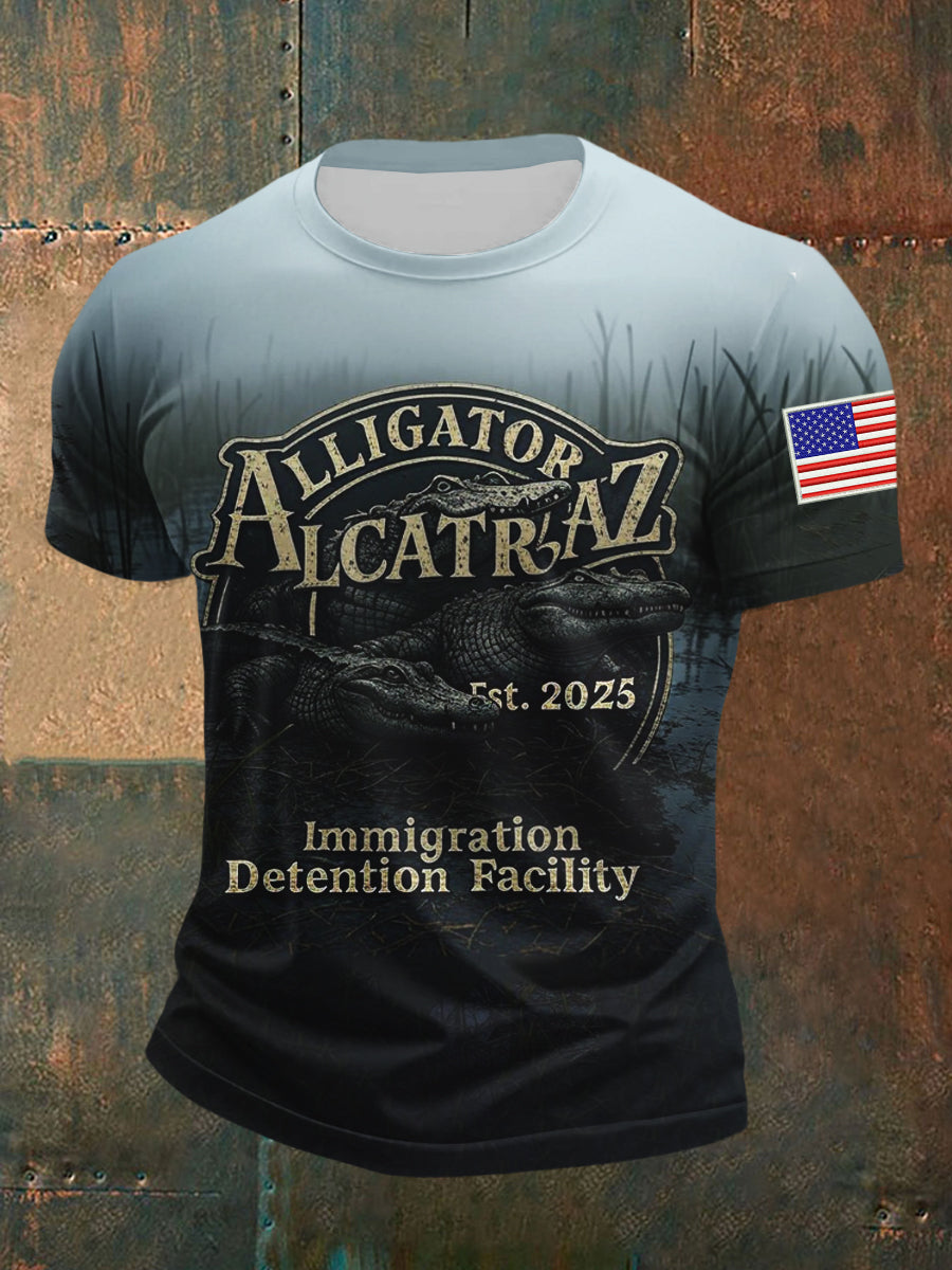 Men's Retro Alligator Alcatraz Funny Florida Everglades Dark Humor T-Shirt