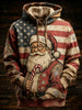 Men's Retro American Flag Christmas Santa Claus Printed Hoodie