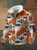 Men's Retro Groovy Hippie Santa Print Casual Zipper Fur-Collar Pullover