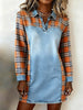 Printed V-Neck Vintage Fashion Long Sleeve Midi Dress