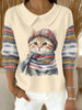 Women‘s Cute Winter Cat Print Cat Lovers Casual Doll Collar Top