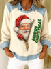 Women's Christmas Santa Claus Print Patchwork Casual Sweatshirt