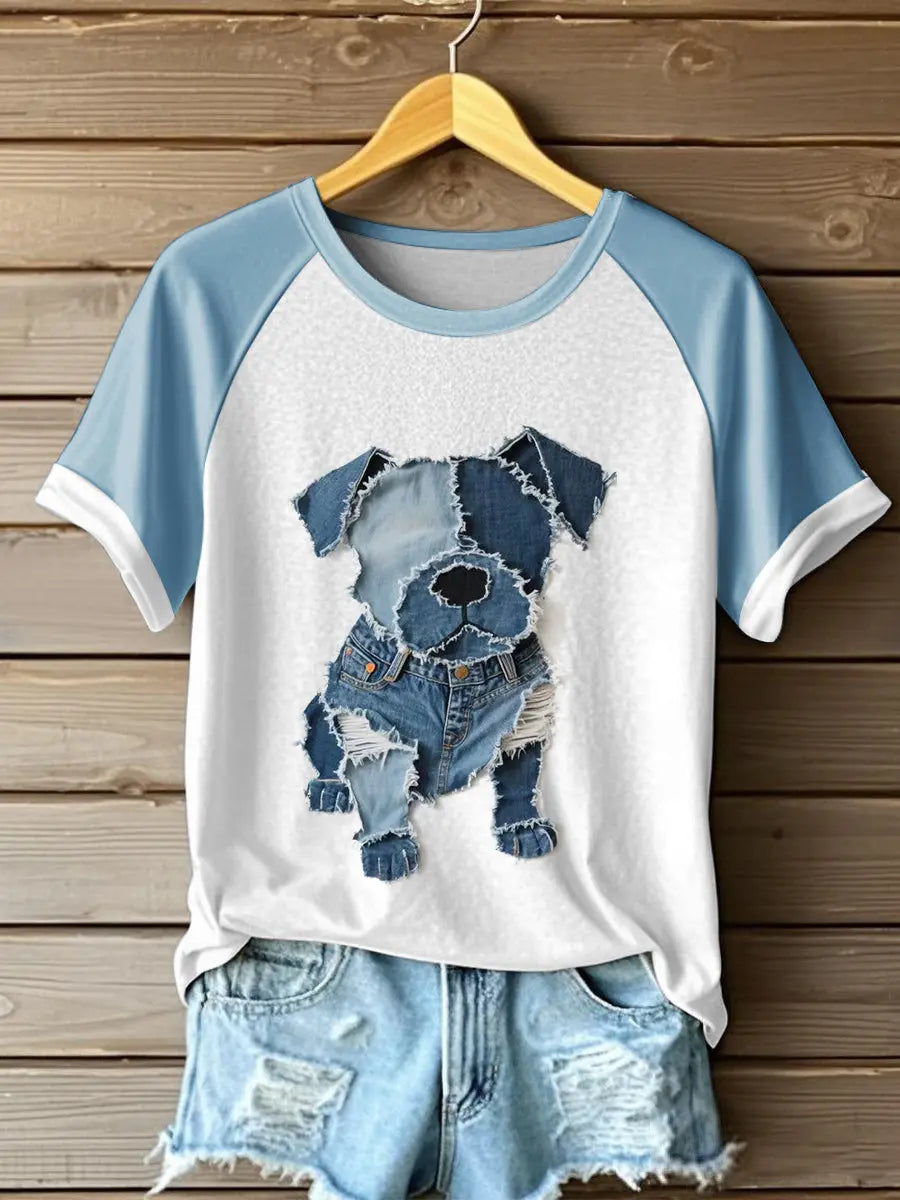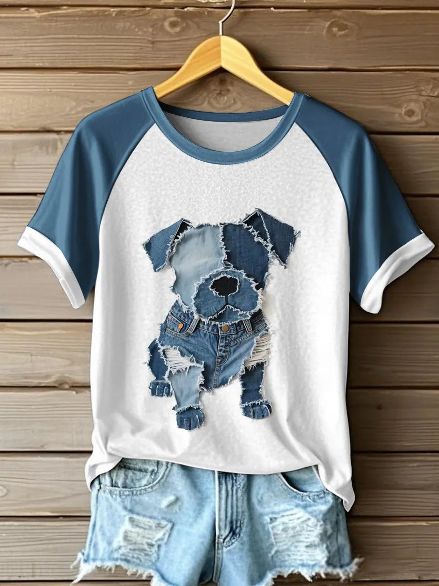 Women's Cute Dog Pattern Patchwork Art T-Shirt