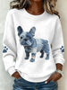 Women's Denim Patchwork French Bulldog Pattern Waffle Sweatshirt