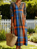 Women's Fall Plaid Pattern Cozy V-Neck Dress