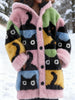 Women's Funny Cute Cat Print Casual Mid-Length Plush Hooded Coat