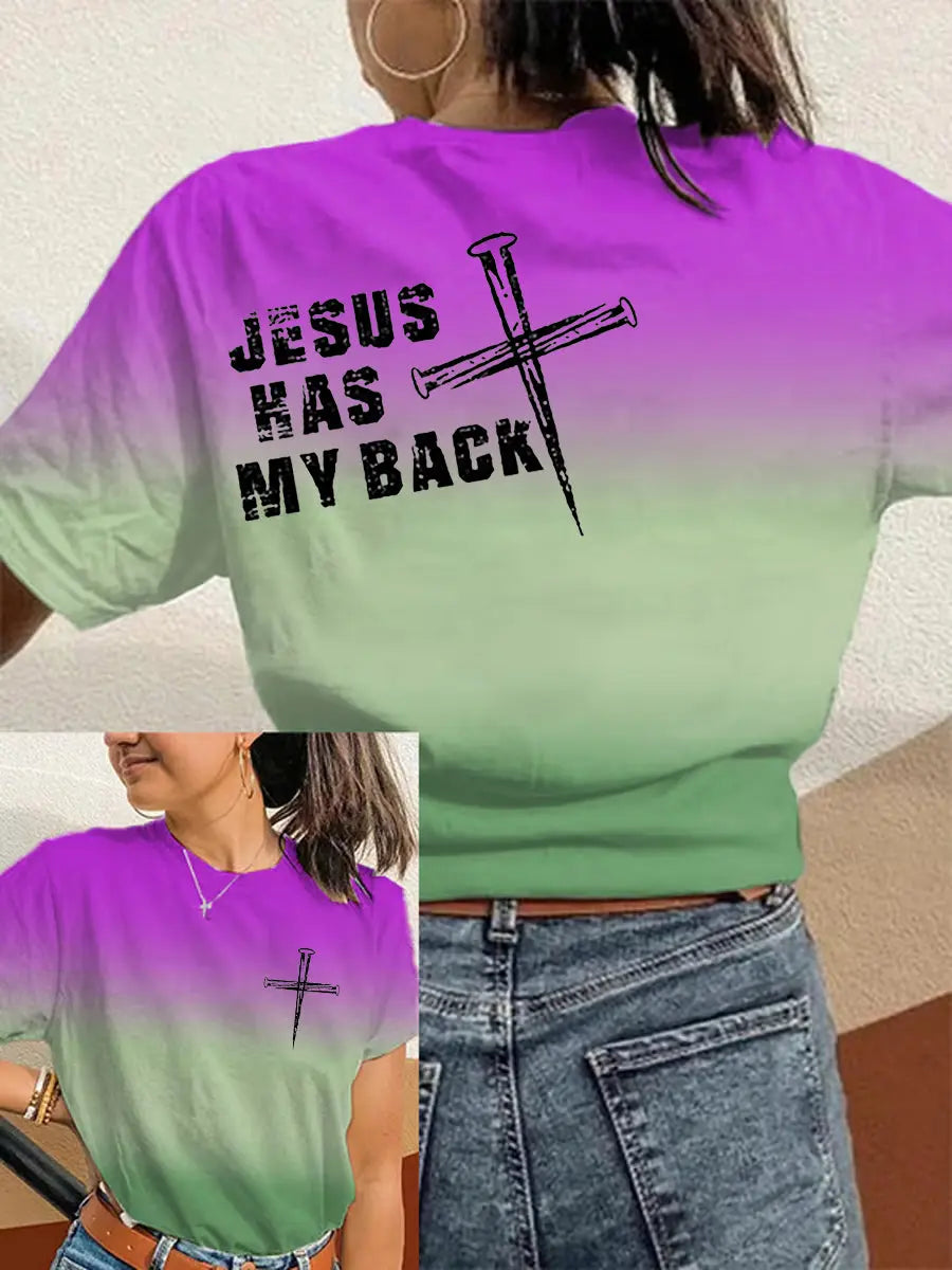 Women's Jesus Has My Back Print Round Neck T-Shirt