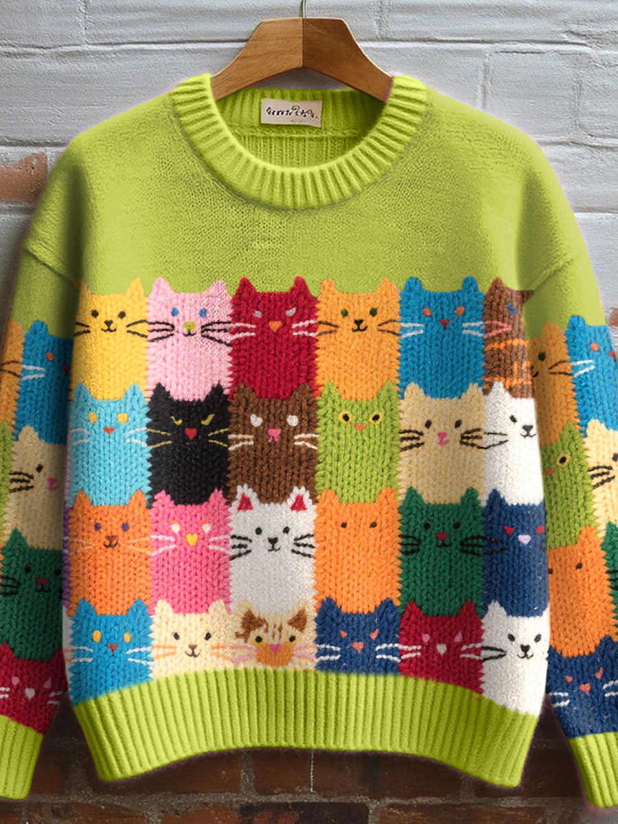 Women's Lovely Cats Pattern Cozy Knit Sweater