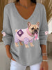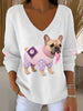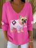 Women's Pink Dog Pink Ribbon Breast Cancer Awareness Support Long-Sleeve Top