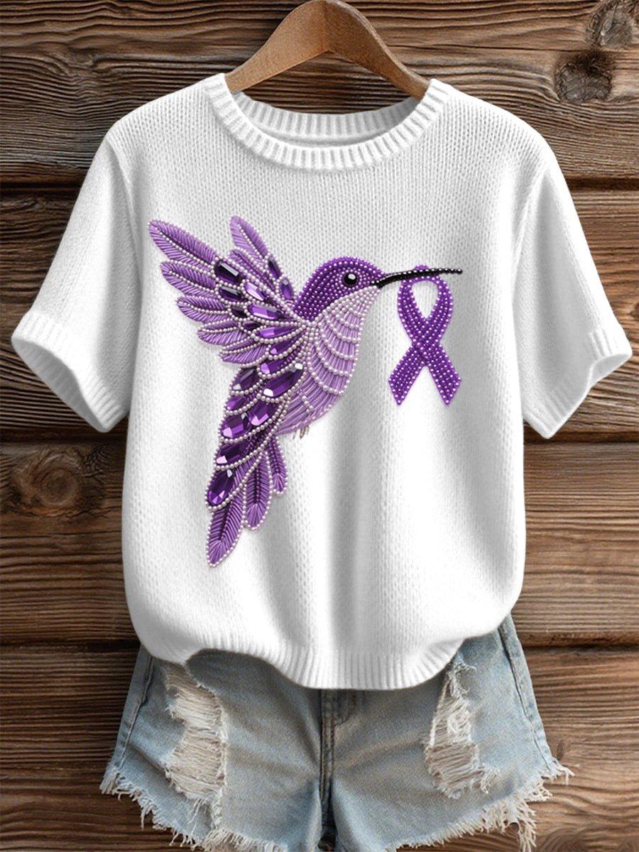 Women's Purple Hummingbird Pattern Cozy Knit Top