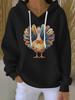 Women's Thanksgiving Turkey Print Casual Hoodie