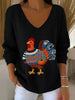 Women's Thanksgiving Turkey V-neck Long Sleeve T-shirt