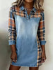 Women's Vintage Plaid Print Patchwork Art Dress