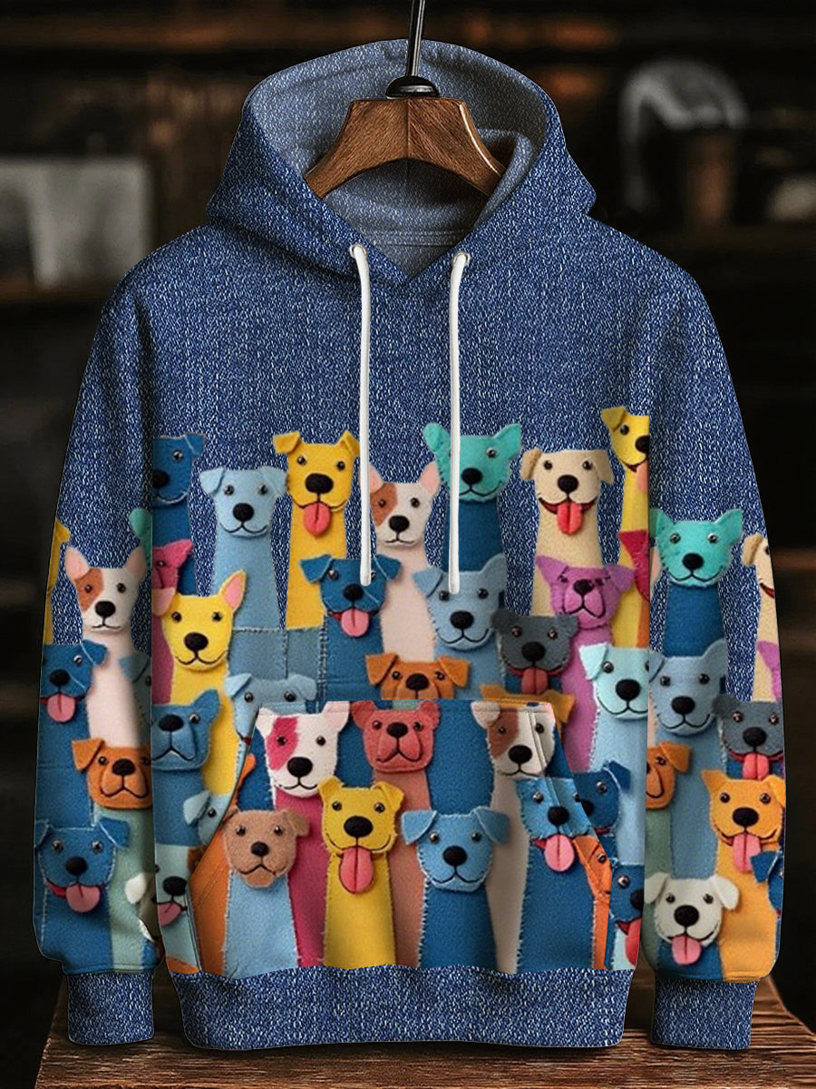 Men's Colorful Dogs Oversized Drop-Shoulder Hoodie with Pockets