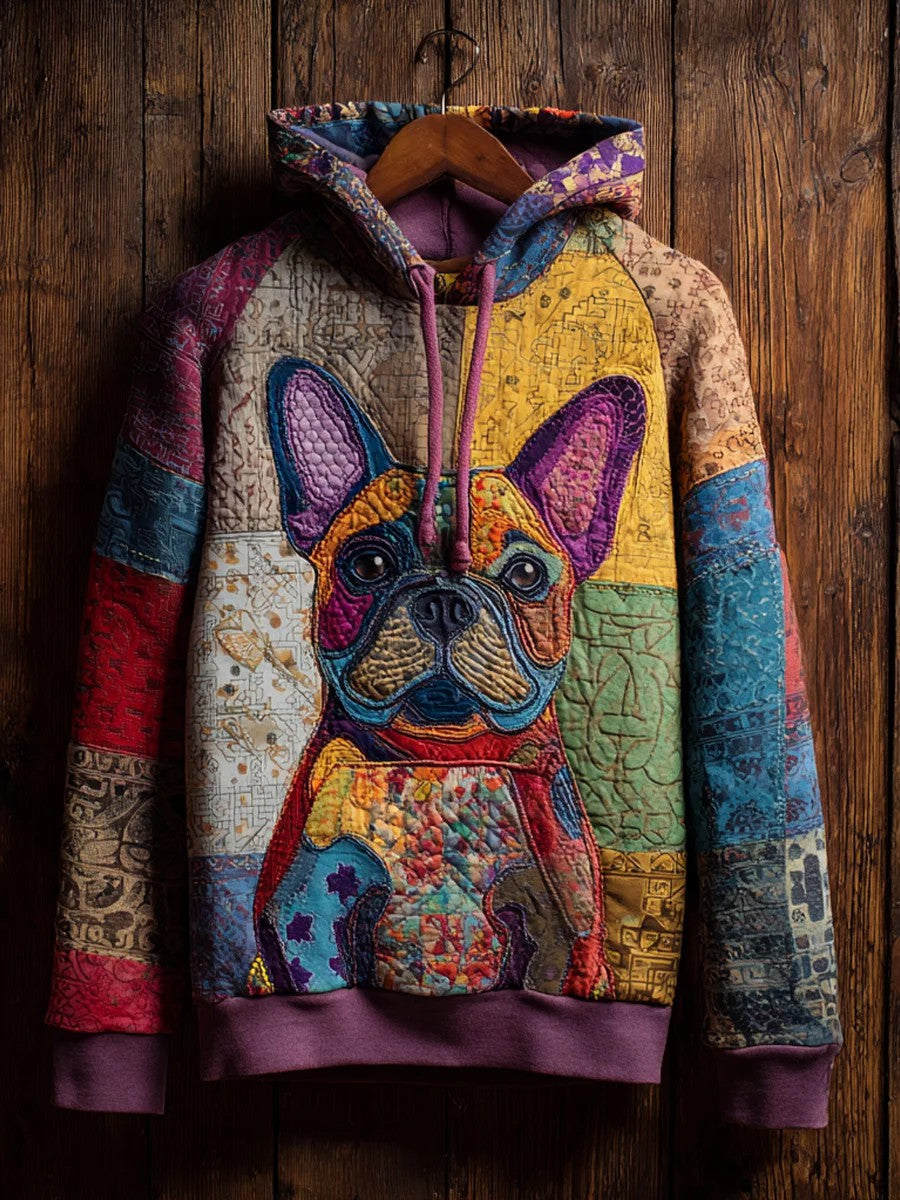 Vintage Patchwork Dog Print Art Casual Hoodie