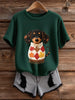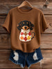 Women's Autumn Dog Art Print Short SleeveT-shirt