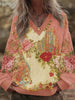 Women's Breast Cancer Awareness Floral Patchwork V-Neck Sweatshirt