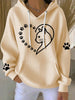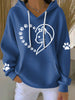 Women's Cute Cat Paws Heart Print Cat Lovers Casual Hoodie