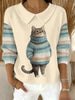 Women's Cute Winter Cat Print Cat Lovers Casual Doll Collar Top