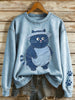 Women's Denim Patchwork Art Fat Cat Pattern Sweatshirt