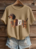Women's Felt Art Dachshund Pattern Cozy Knit Top