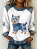 Women's Lovely Yorkshire Terrier Dog Pattern Denim Patchwork Waffle Sweatshirt