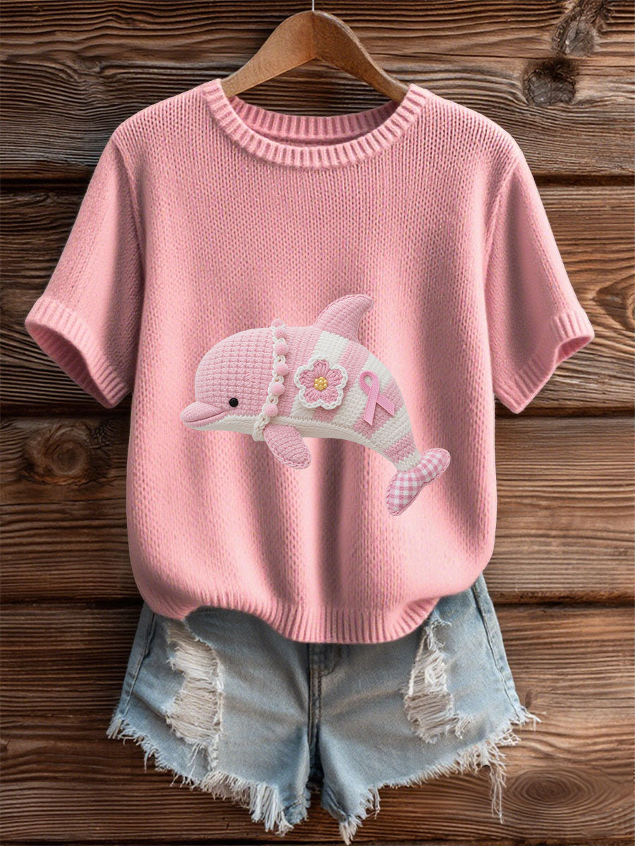 Women's Pink Breast Cancer Awareness Dolphin T-Shirt