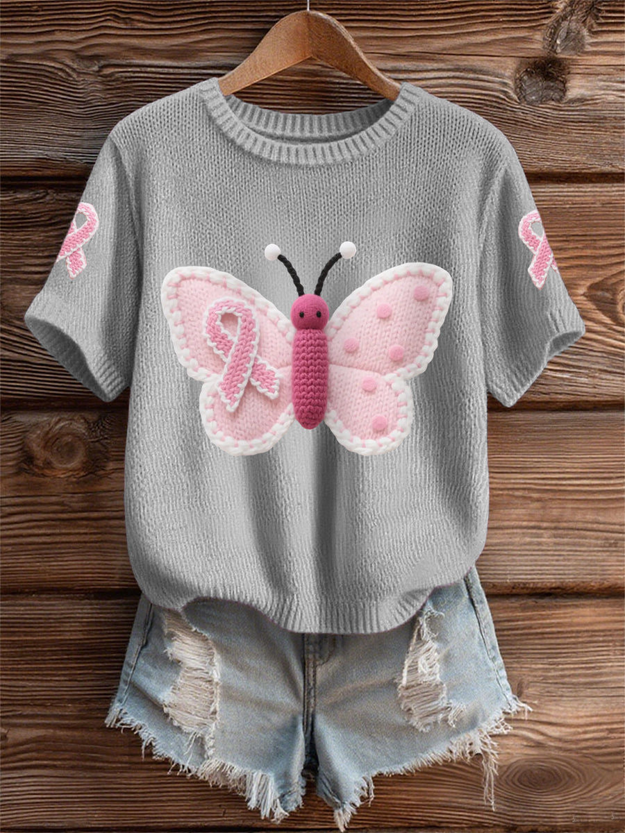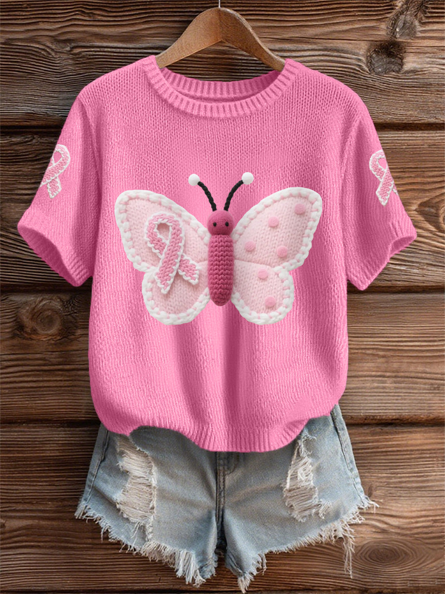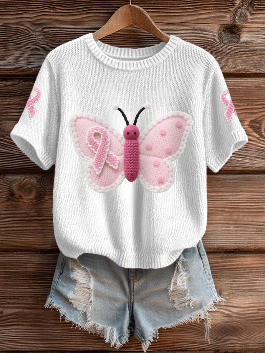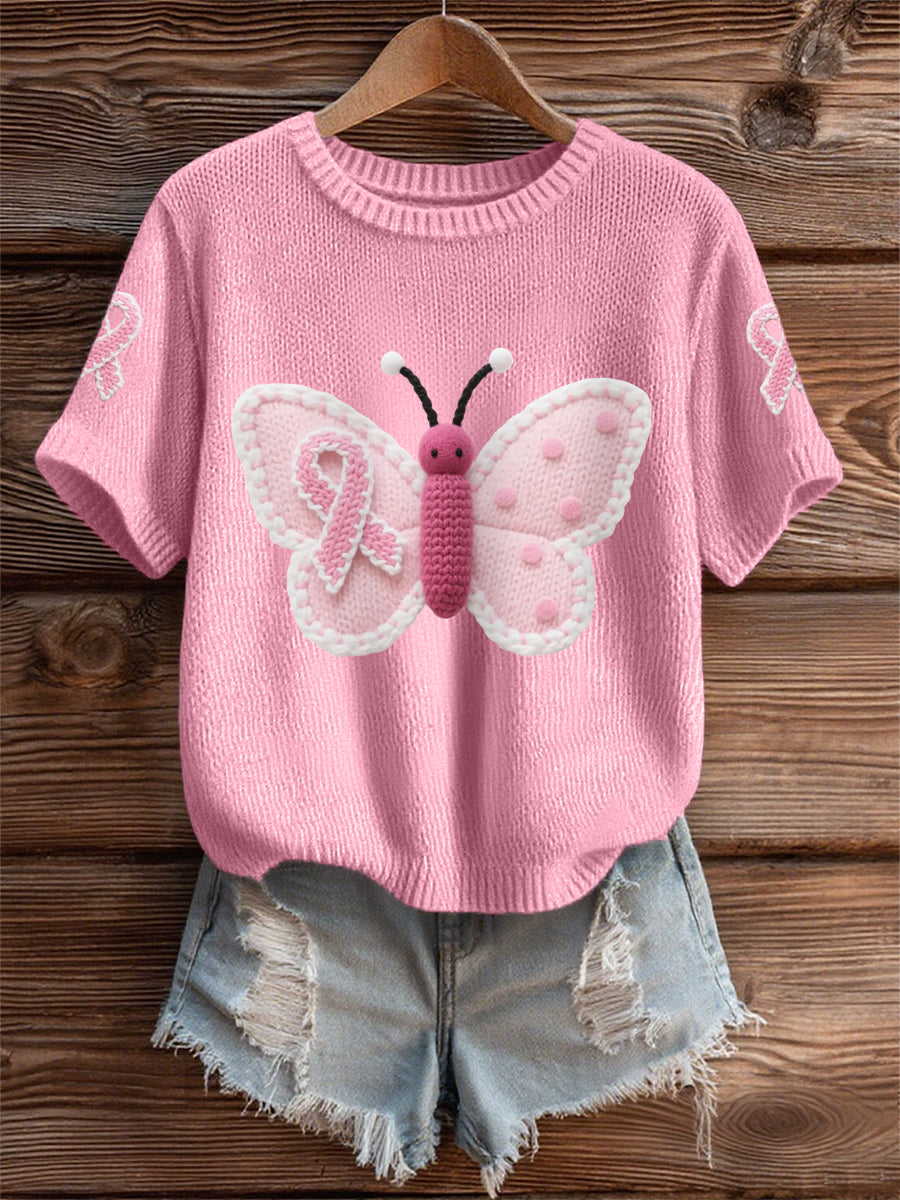 Women's Pink Butterfly Pink Ribbon Breast Cancer Awareness Support Tee