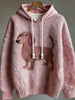 Women's Pink Dachshund Embroidered Plush Comfortable Knitted Oversized Sweater Sweatshirt