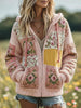 Women's Pink Floral Print Casual Zip-Up Jacket