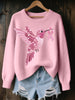 Women's Pink Hummingbird Embroidered Cozy Knit Sweater